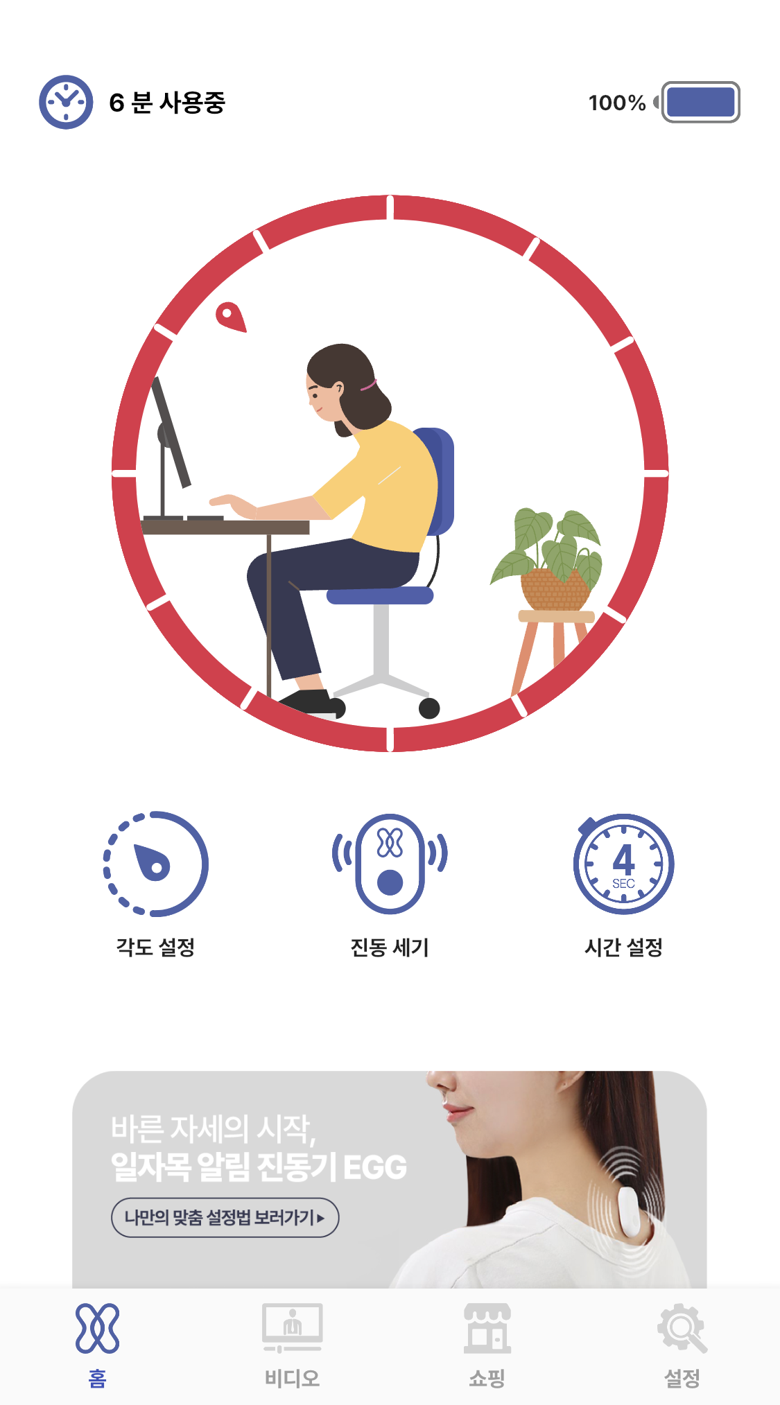 저는 5초간 나쁜 자세가 지속되면 진동이 울리게 해놨는데 바로바로 교정이 되는 것 같아 좋네요.