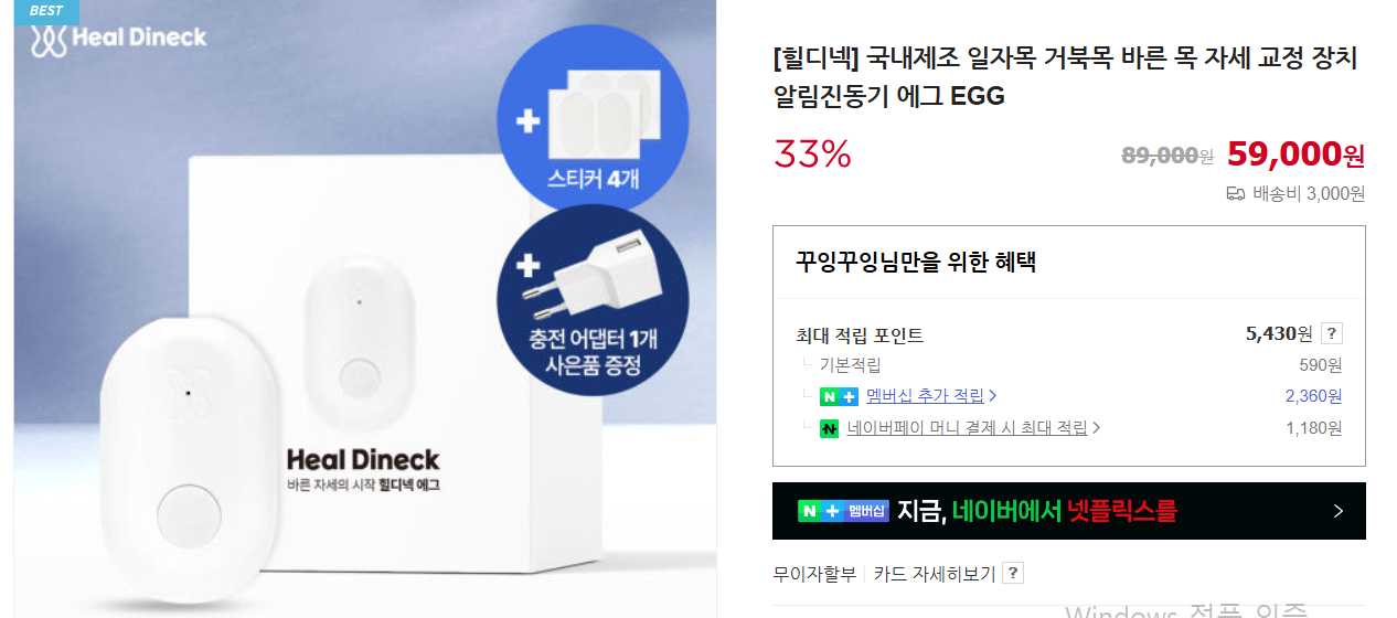 [힐디넥] 일자목 거북목 알림 진동기 에그 EGG : 힐디넥