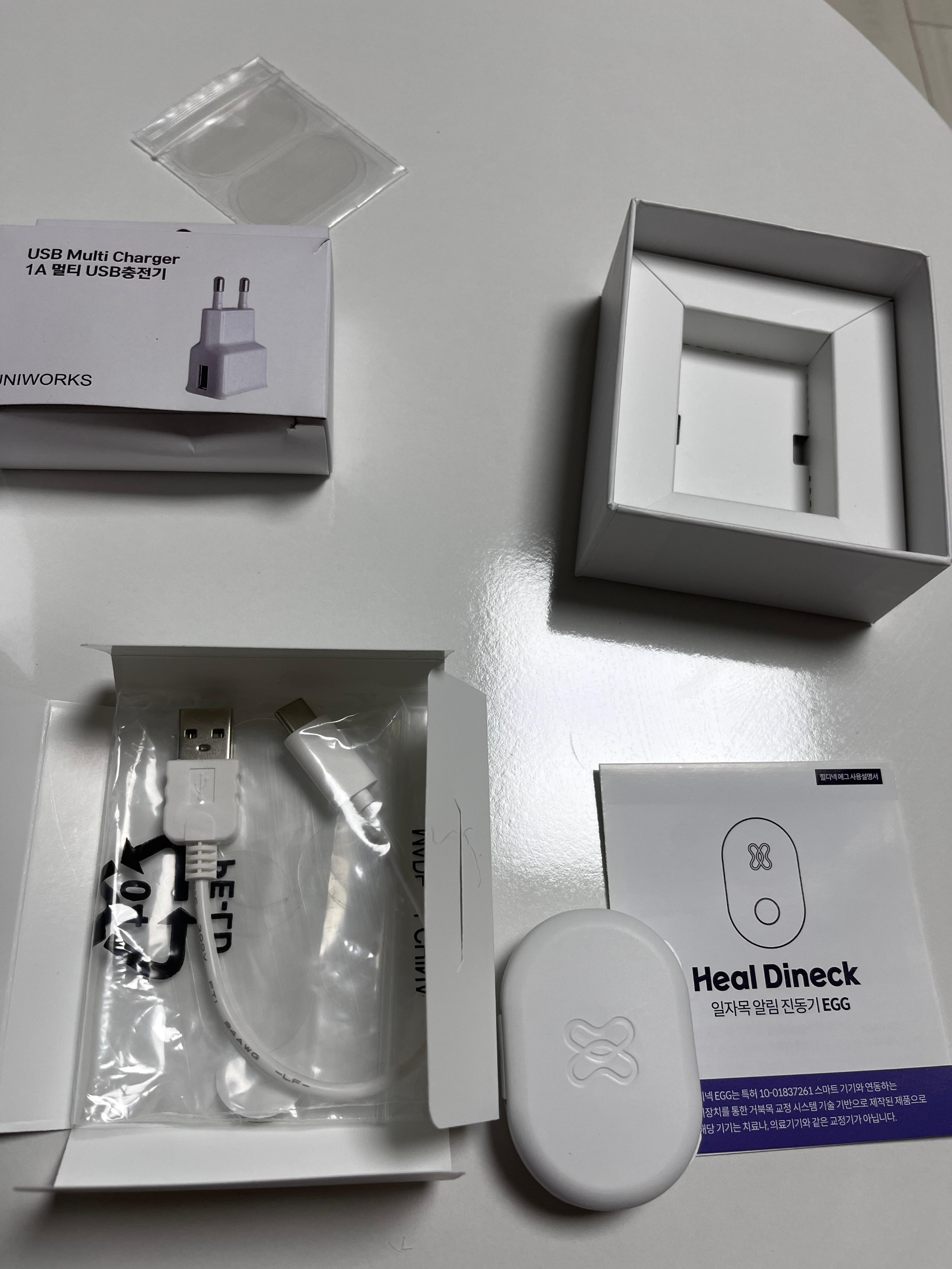 기계 구성은 정말 간단합니다. 몸에 부착하는 힐디넥 에그 본체, 보관 케이스, 케이블, 사용 설명서로 되어있습니다.