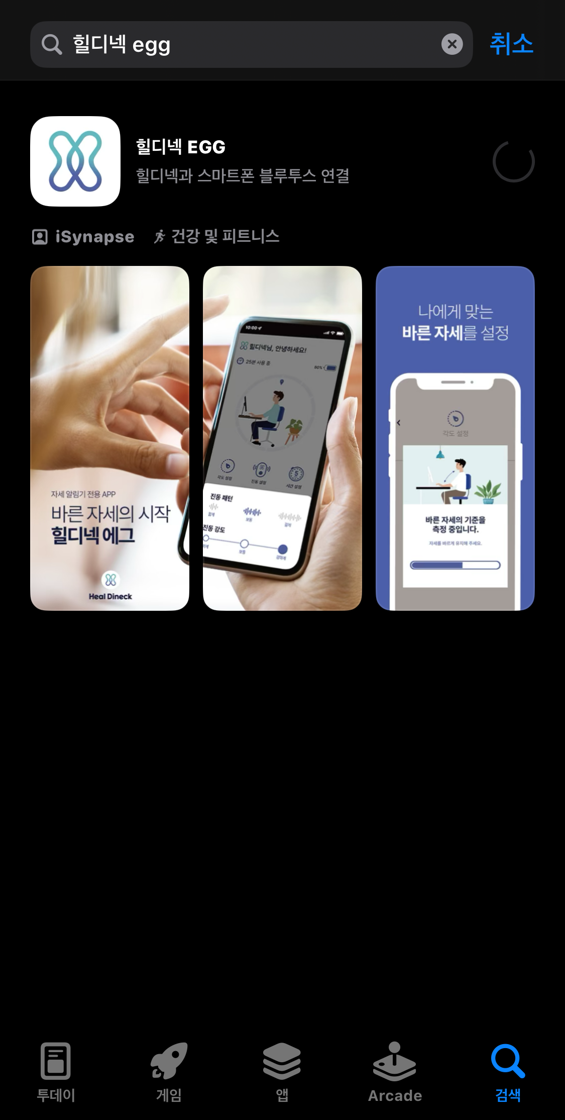 다운을 받고 블루투스로 에그와 연결한 후에 어플과 연동시키면 바른자세 정렬이 흐트러지면 바로 진동이 울립니다.