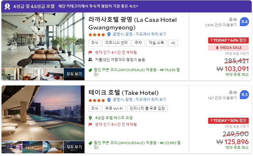 광명역에는 라까사호텔, 테이크호텔이 있는데 테이크호텔과의 비교도 조만간 올려보도록 하겠습니다.