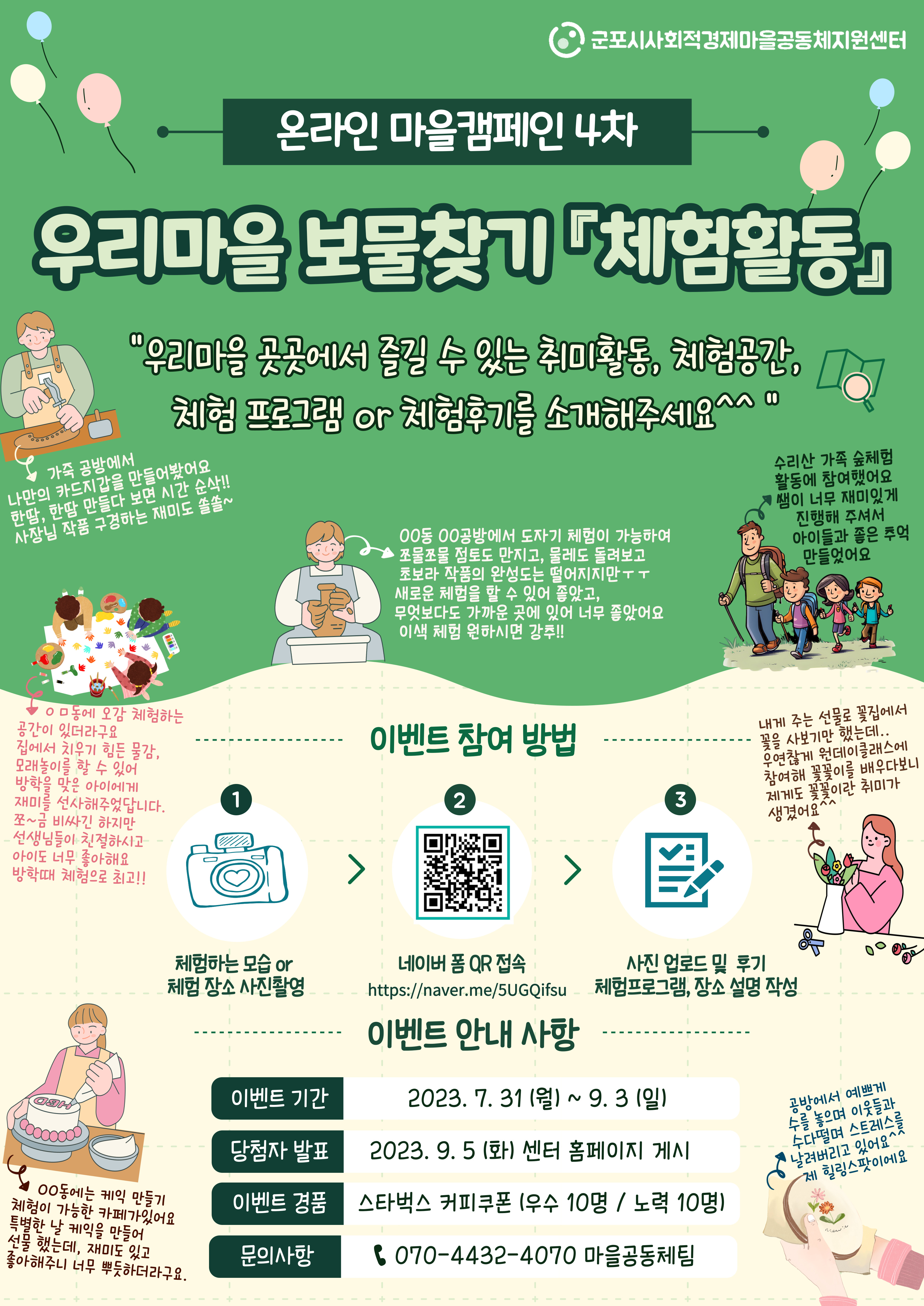 당첨자 발표 : 9/5(화) 군포시사회적경제마을공동체지원센터 홈페이지(https://www.gunpose.or.kr/) 게시