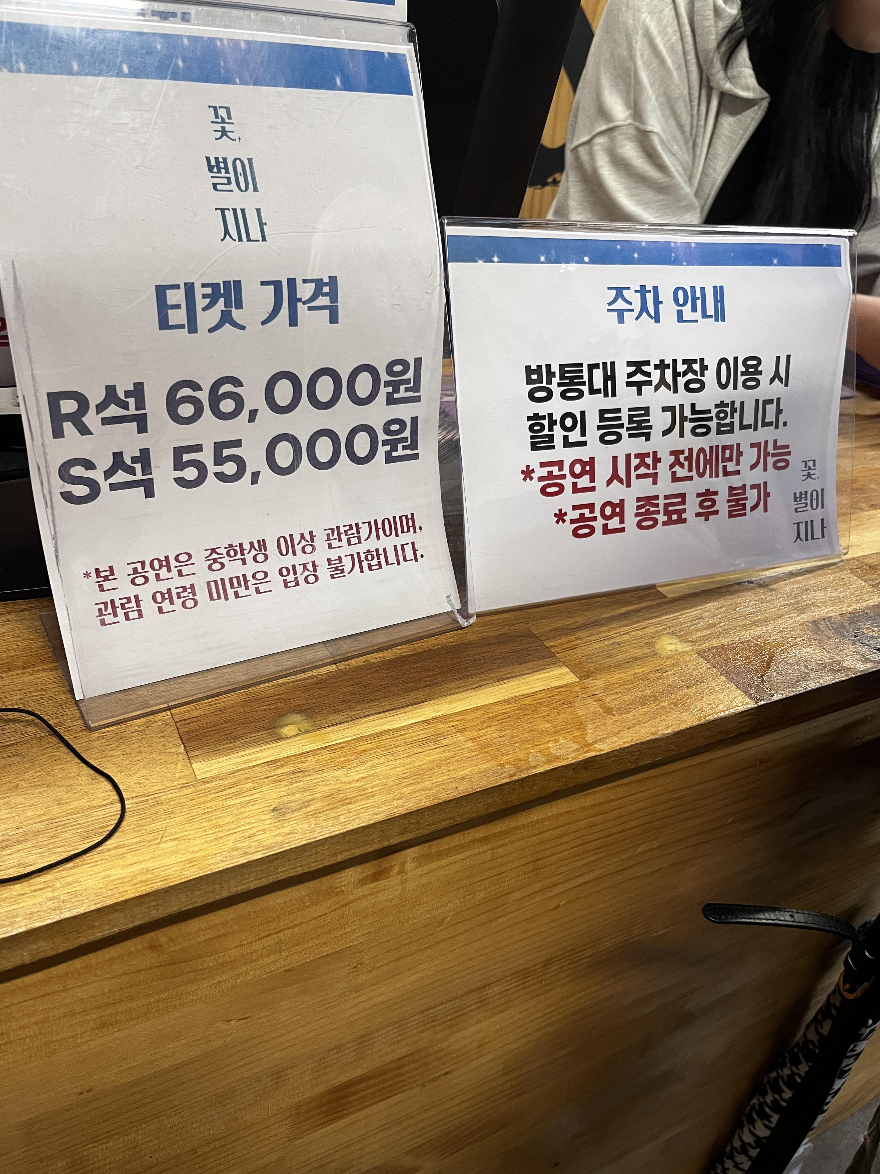 외부의 티켓박스는 다른 공연의 티켓박스라 꼭 지하3층으로 가세요. 그리고 가실때는 엘리베이터를 이용해서 가세요. 계단으로 가는데 무척 힘들었습니다.