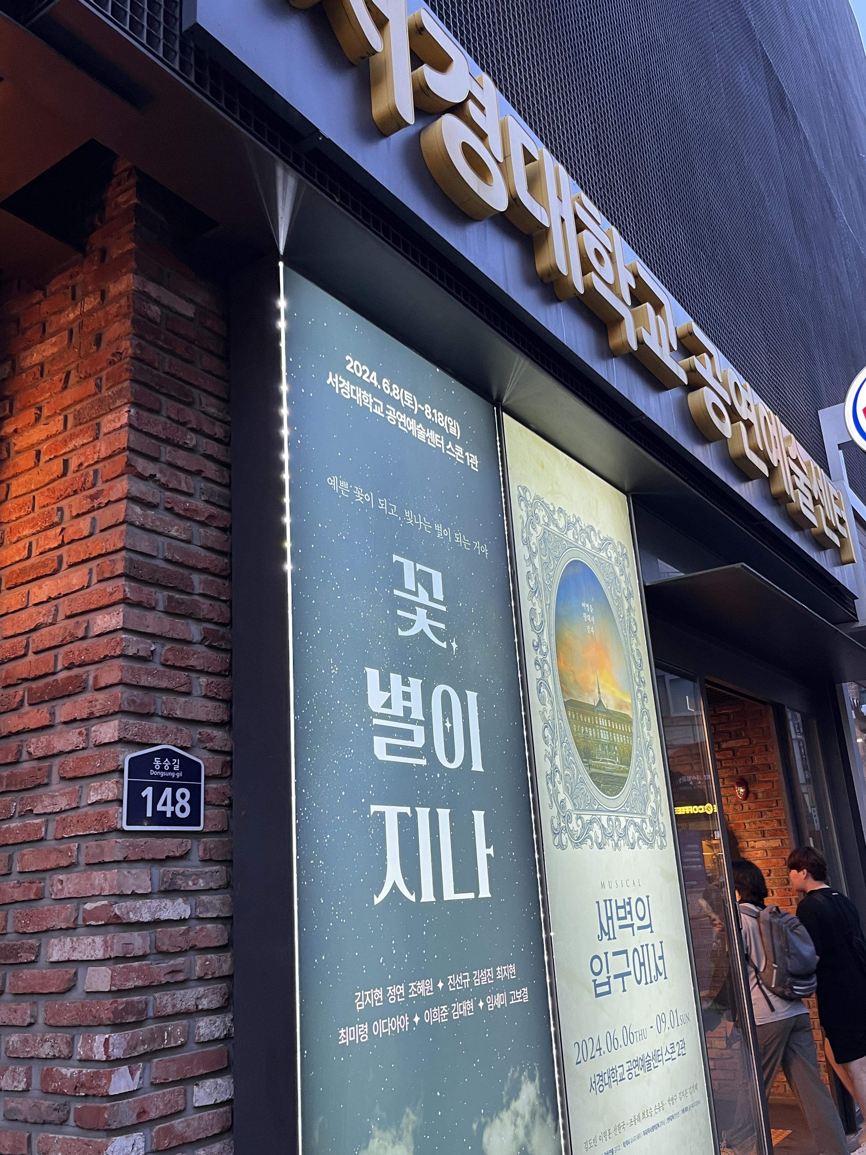 꽃 별이지나의 공연장은 서경대학교 공연예술센터 주차는 한국방송통신대학교 주차장에 하면 연극 관람 시 주차료의 30%할인혜택이 있어 이 곳이 좋습니다.