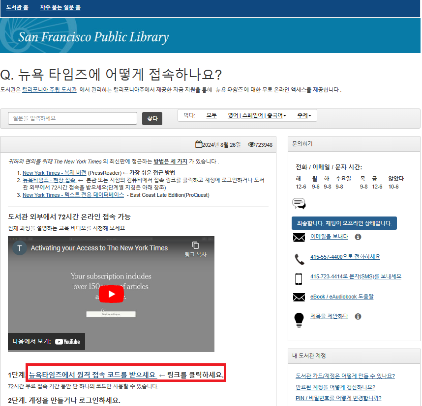 1. https://sfpl.libanswers.com/faq/166904 접속 후 1단계 클릭 (빨간색 상자 부분)