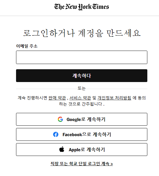 뉴욕타임즈는 유료 구독 신문이기 때문에 보기 위해서는 유료로 구독을 해야하는데요.