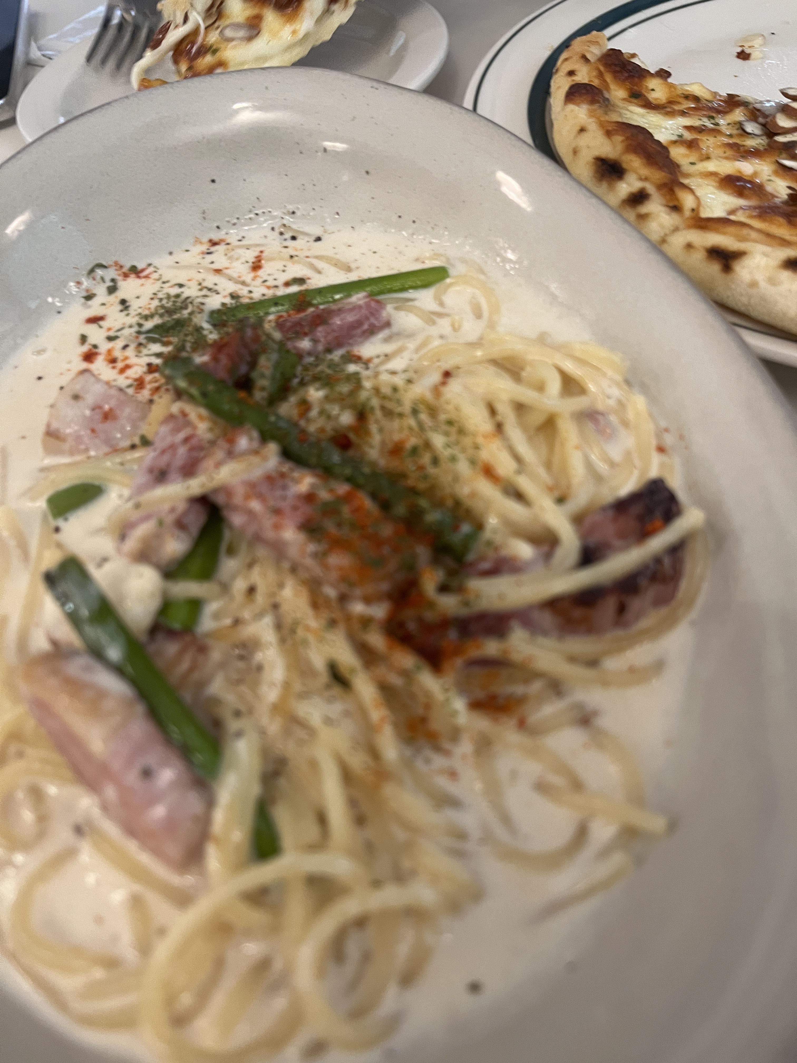 메뉴 : (추천) 크림 베이컨 파스타, 고르곤졸라피자