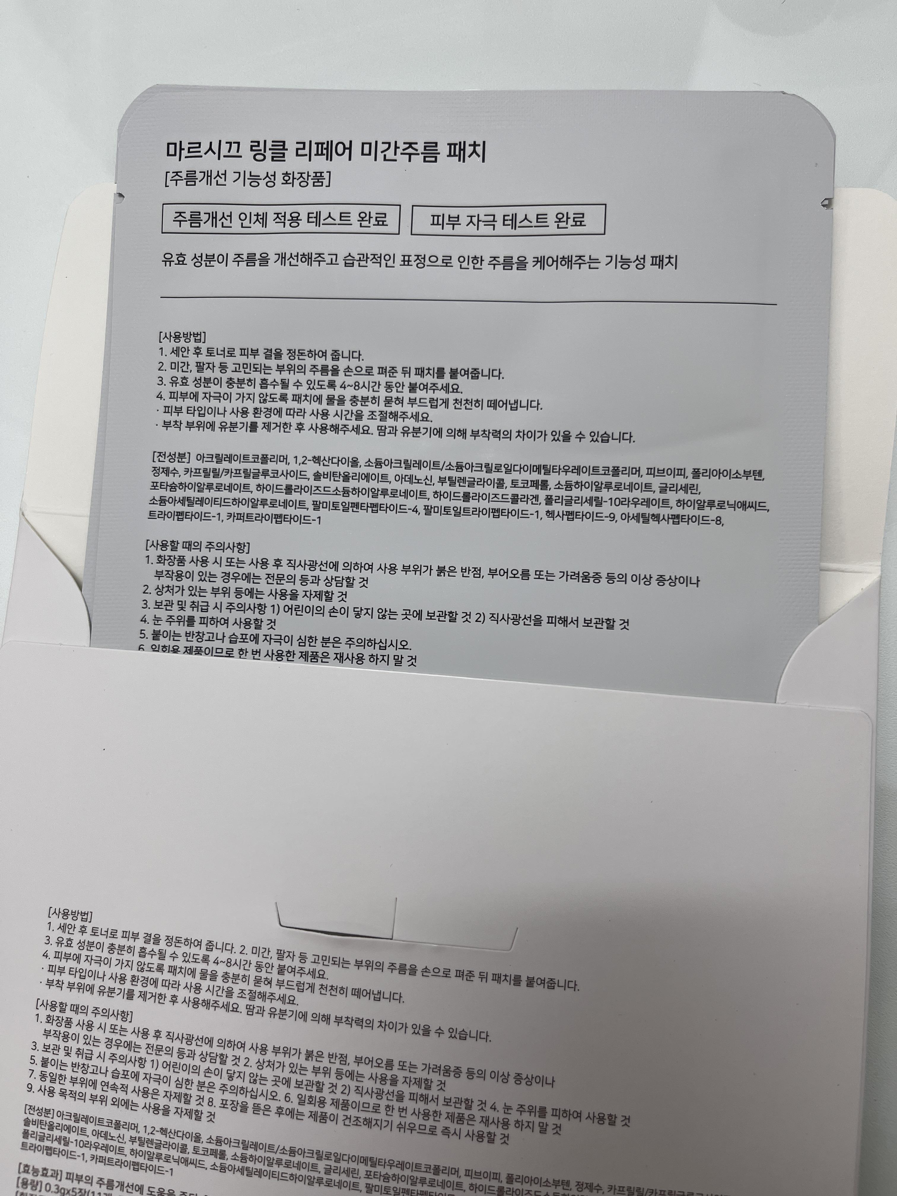 3일째 사용하는데 아침에 일어났을때 미간 주름이 안보이고 효과가 아주 좋아서 계속 사용해 볼 예정입니다.