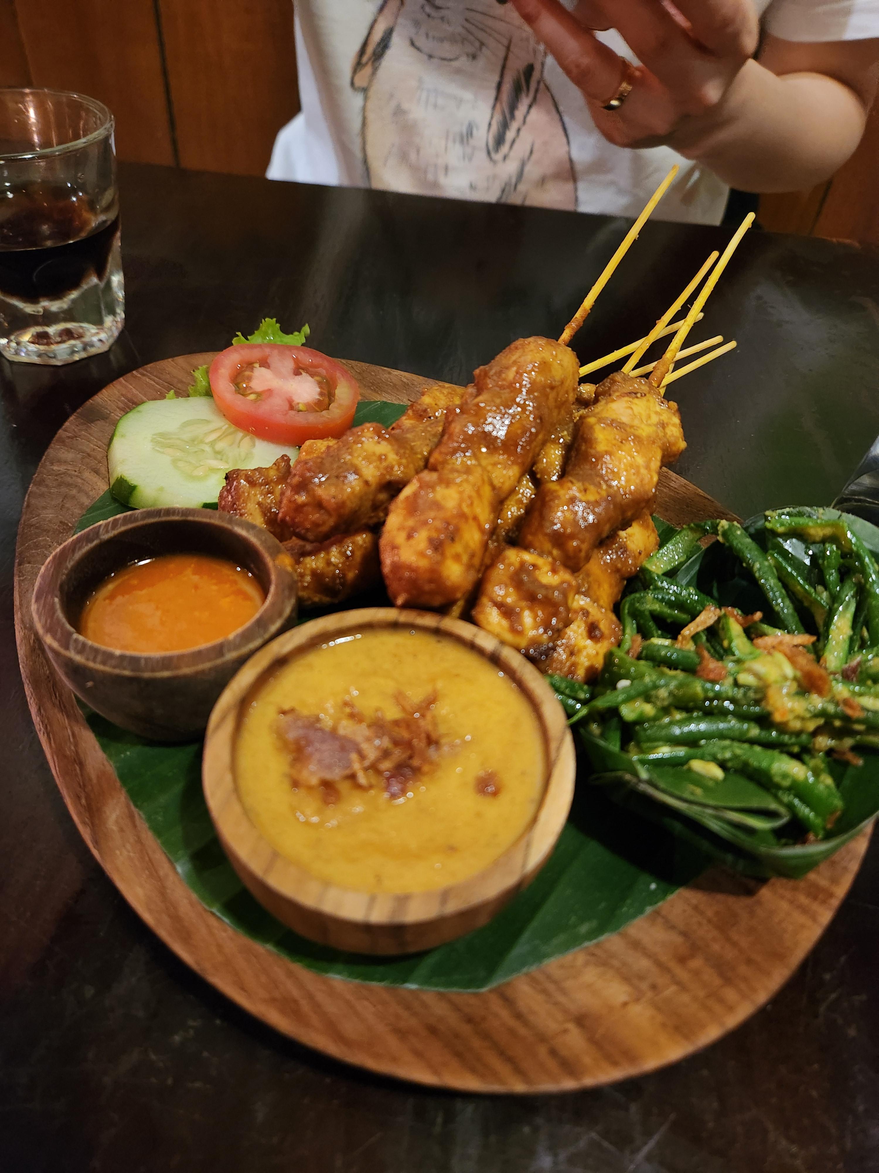 저는 우리 나라의 한식백반처럼 나오는 나시짬뿌르와 치킨사태, 디저트로 부부르인지를 주문했습니다.