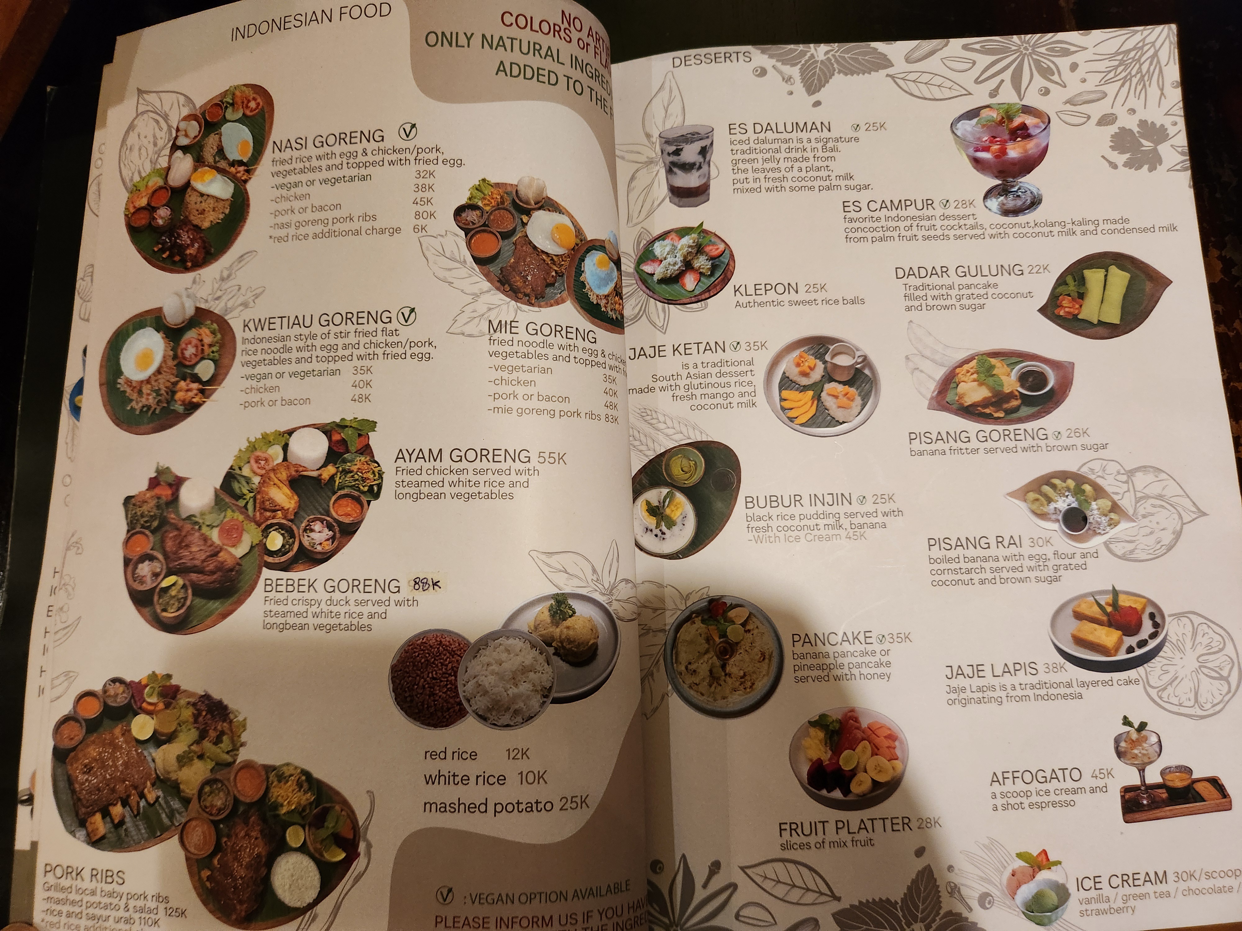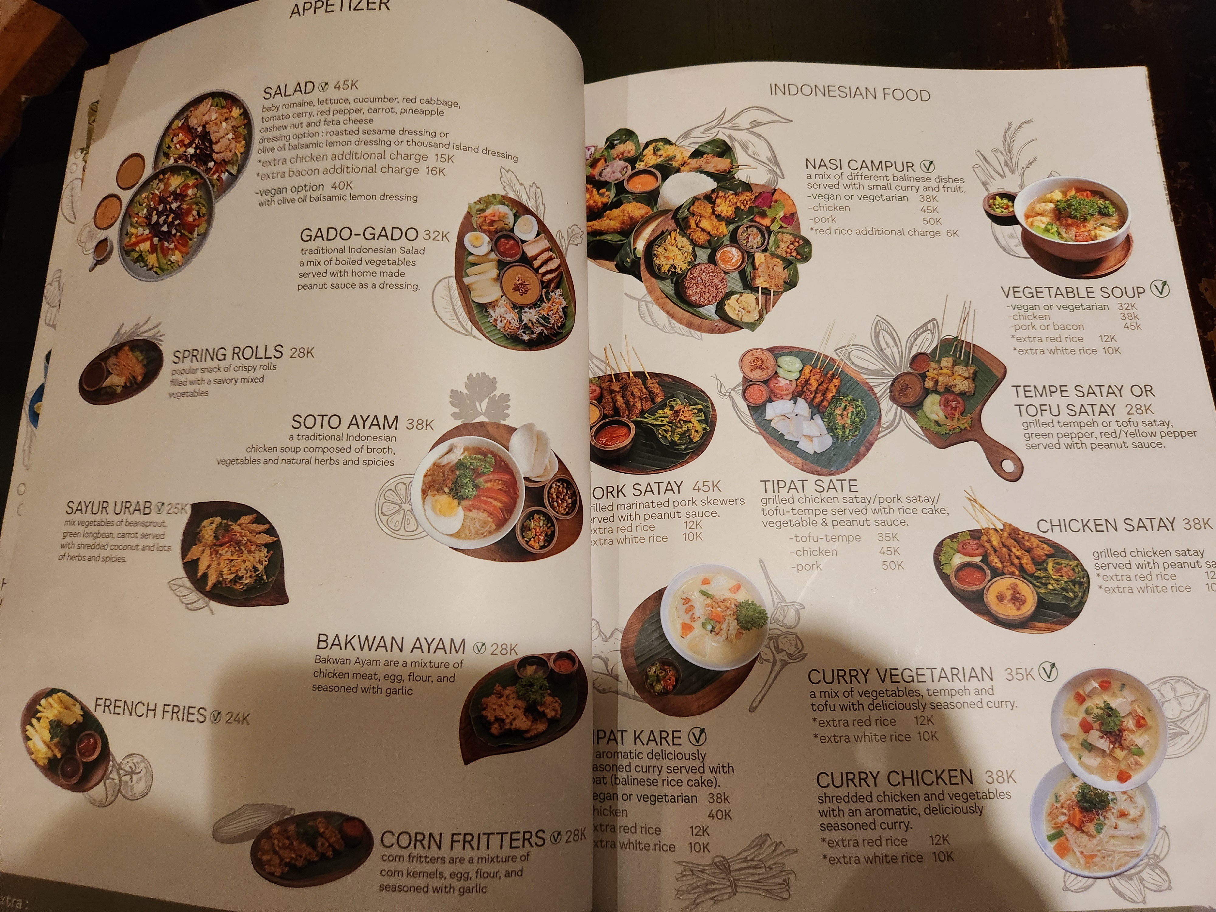 메뉴판의 가격들을 보면 대부분 다른 식당에 비해 저렴합니다. 외국인이 많이 오는 곳임에도 불구하고 가격이 우붓 시내에서 저렴한 편이었습니다.