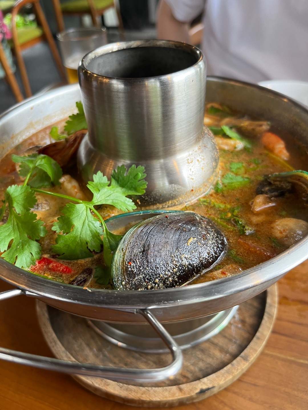 메뉴 중에서 똠양꿍이 제일 먼저 나왔습니다. 저는 이게 제일 맛있었습니다.