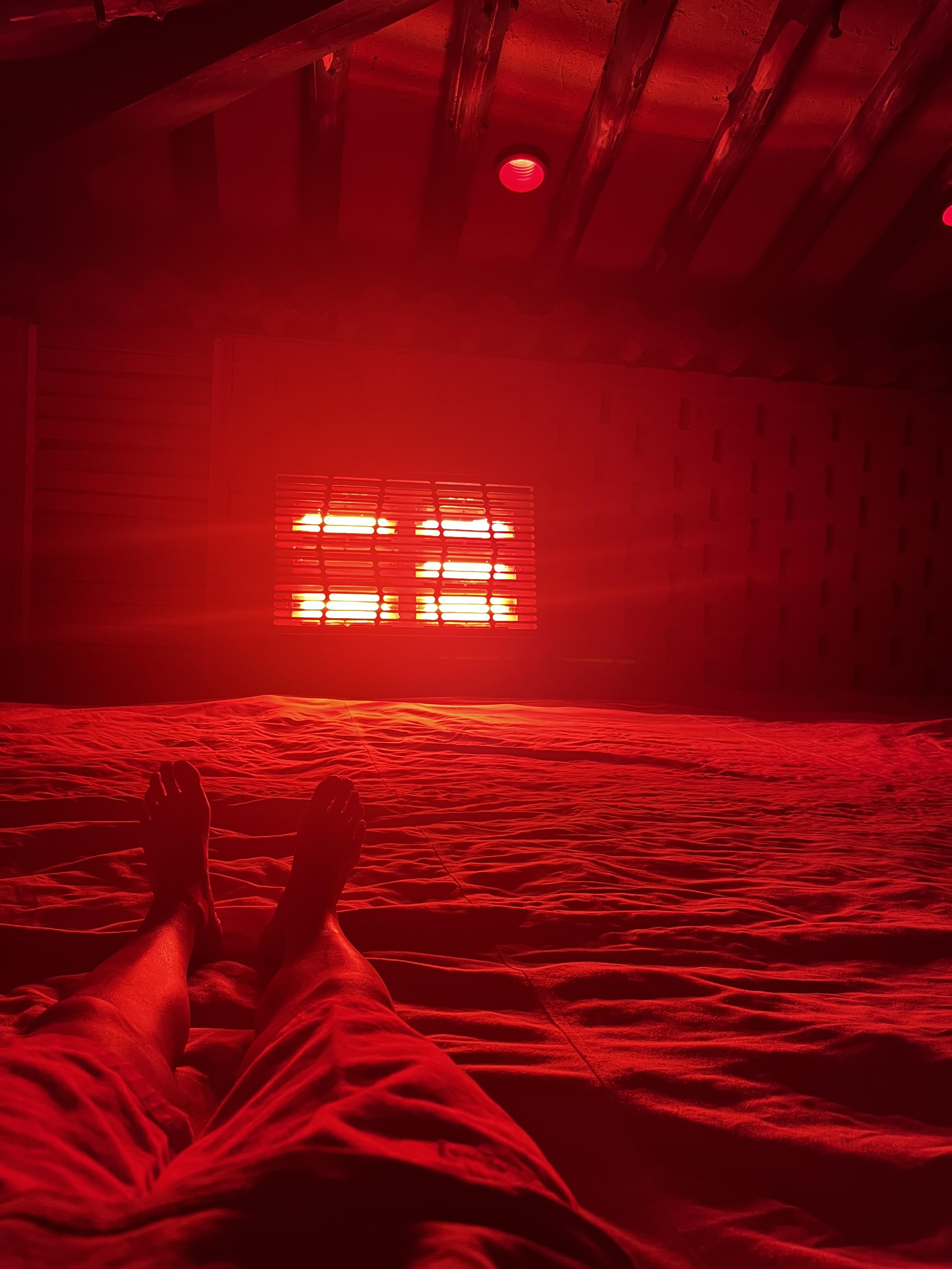 원적외선 앞에서 누워 쬐고 있으면 땀이 비오듯 흐릅니다.