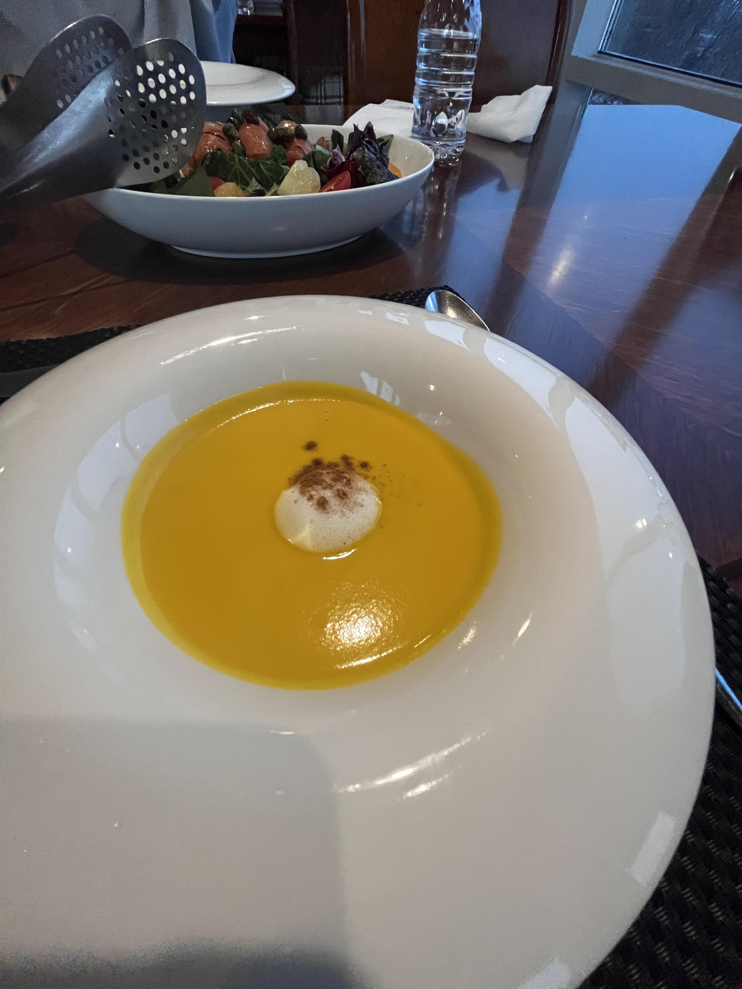 식전 빵과 오늘의 스프(단호박스프가 나왔음)