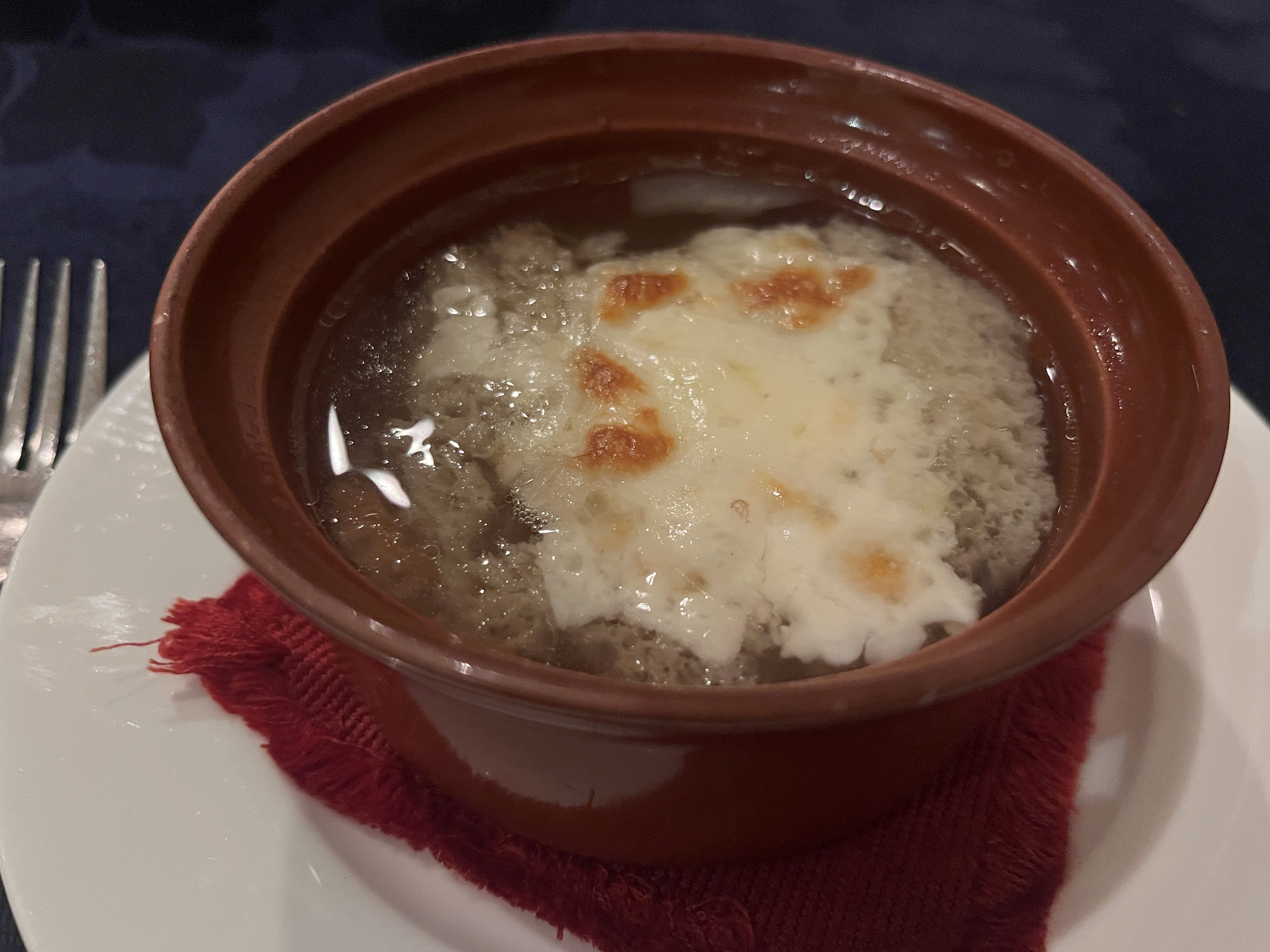 양파 스프 안에 치즈 같은 게 들어 있는데 이 치즈가 뭔가 이게 녹은 건지 흐물흐물 한 건지 맛이 굉장히 신기했습니다.