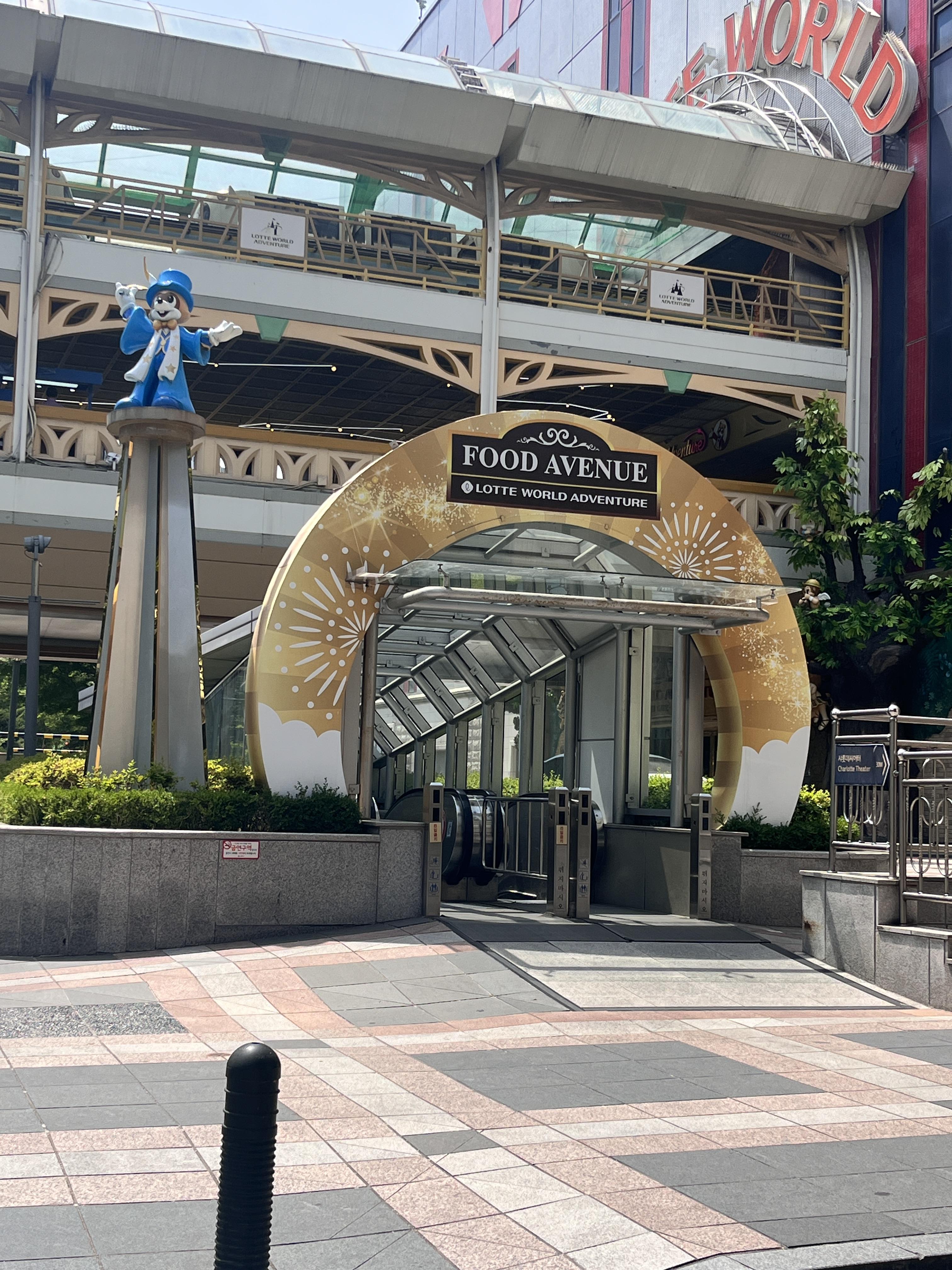 이 에스컬레이터로 나오면 이 곳이 바로 푸드 에비뉴 입구인데, 바로 앞에 롯데씨어터가 위치해있습니다.