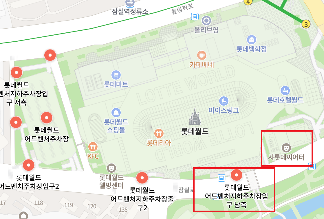→ 롯데월드 어드벤처지하주차장 입구 남측