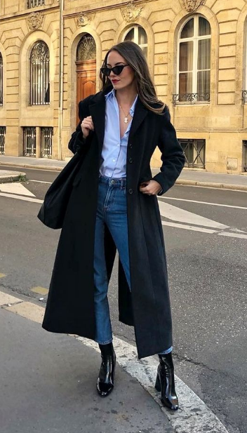 검정색 트렌치코트를 베이직한 룩과 조합하여 클래식하면서도 세련된 분위기를 연출할 수 있습니다.