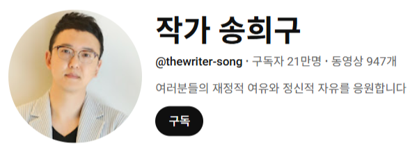 김부장 이야기로 유명한 송희구 작가님, 요즘에는 유튜브에서도 다양한 인사이트를 주고 계신데