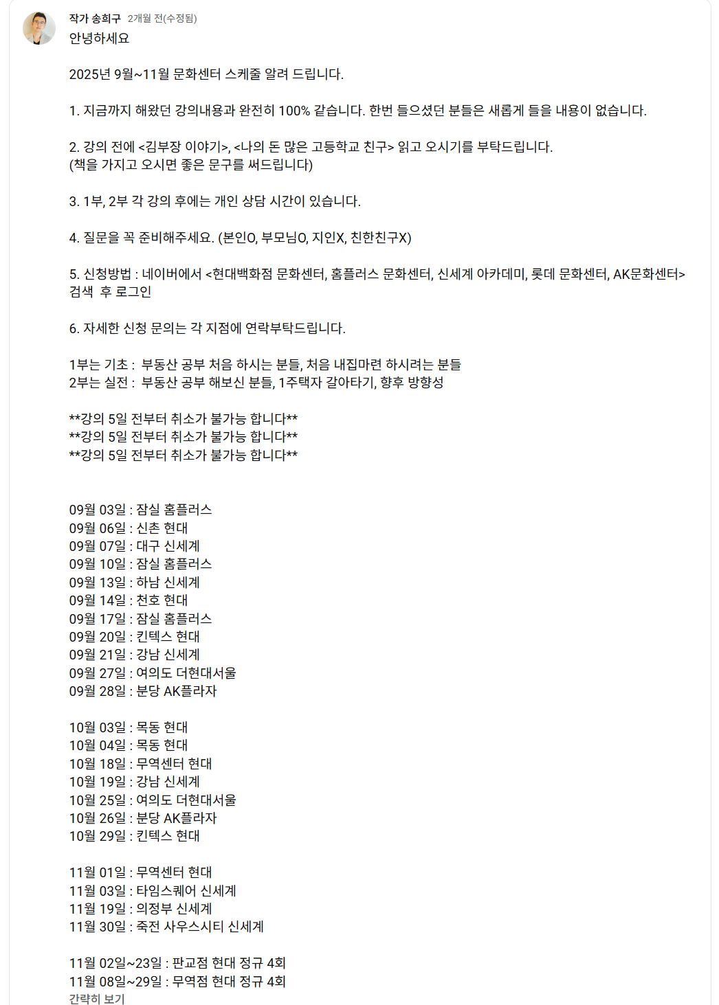 작가님이 오프라인 강연도 진행하고 있어서 수강한 후기, 상담 꿀팁을 남겨보도록 하겠습니다.