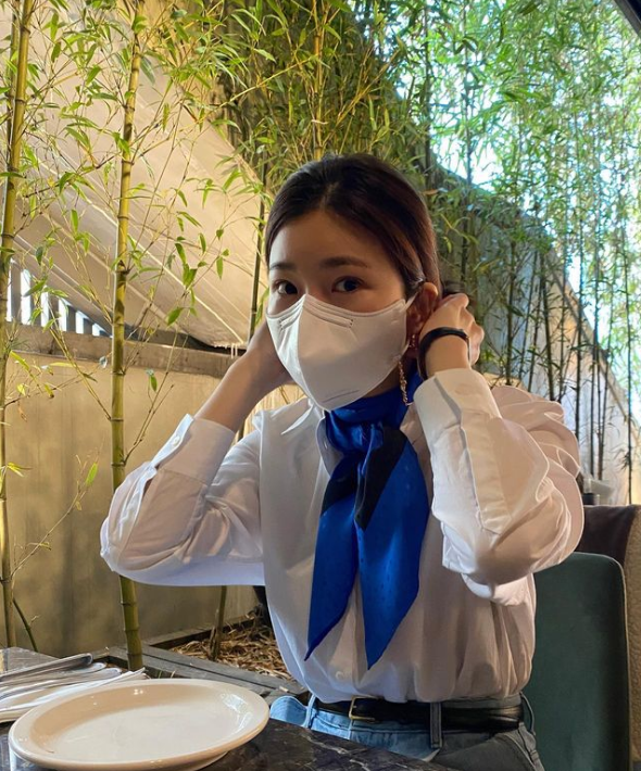 연예인들이다보니 조금 더 컬러감 있게 스카프에 포인를 줄 때는 화이트 또는 블루 컬러 룩을 가장 많이 연출하는 편입니다.