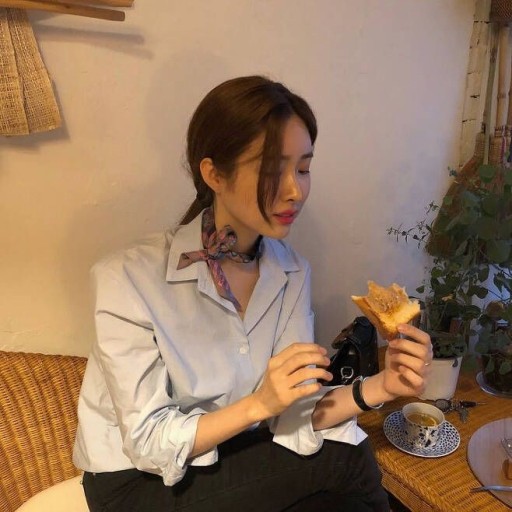 블랙 셔츠와 스카프 연출을 좀 찾아보려고 했는데, 찾아볼 수 없었고 라운드 넥이나 니트류 소재의 옷과 코디한 사진들이 있었습니다.