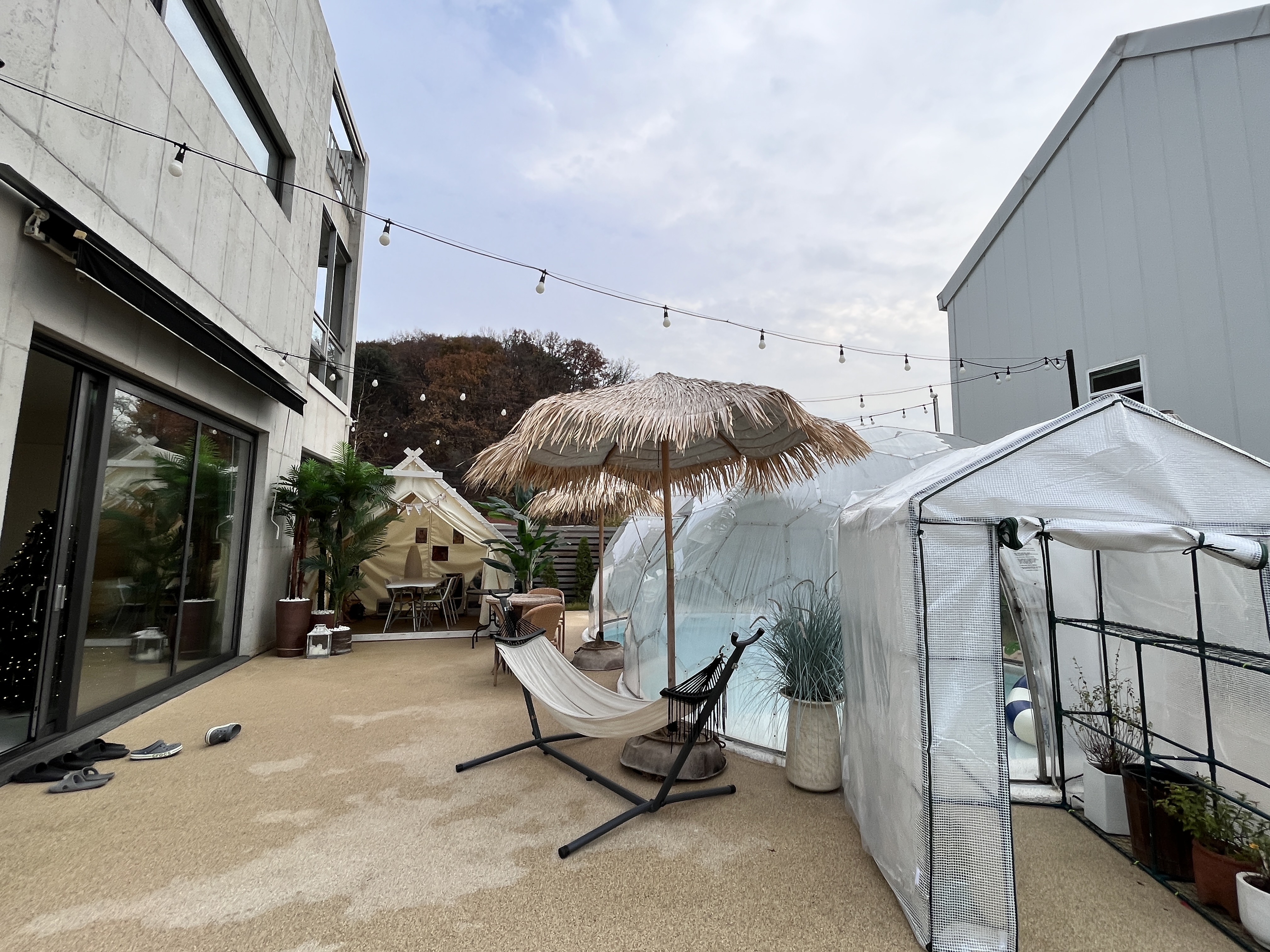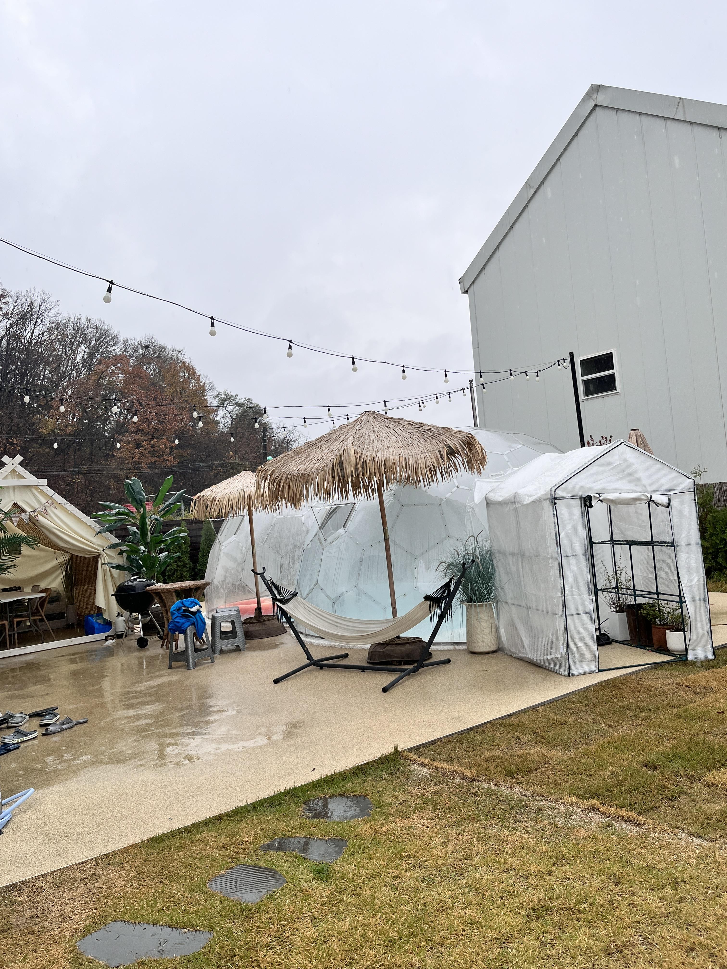 돔형 수영장과 바베큐를 먹을 수 있는 공간,
