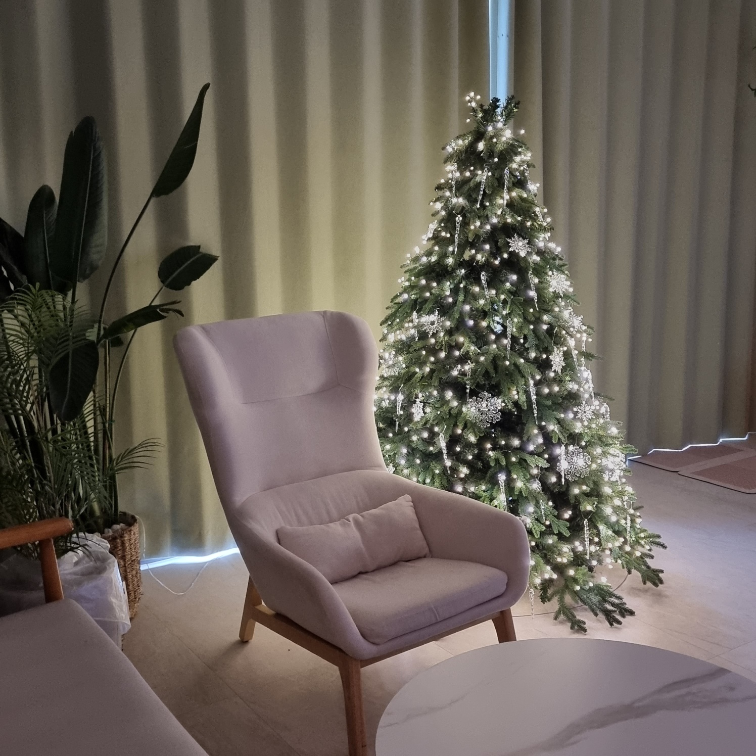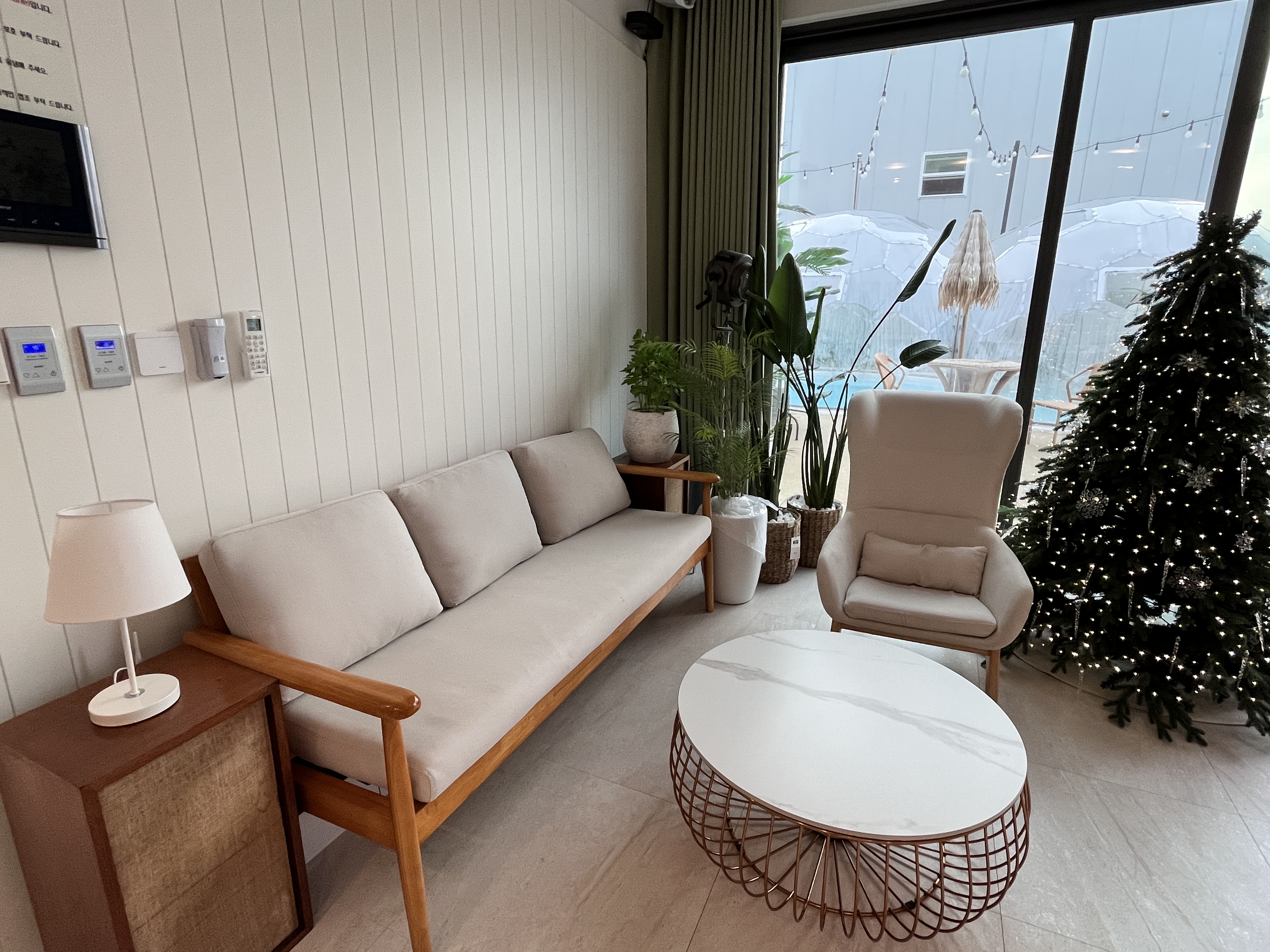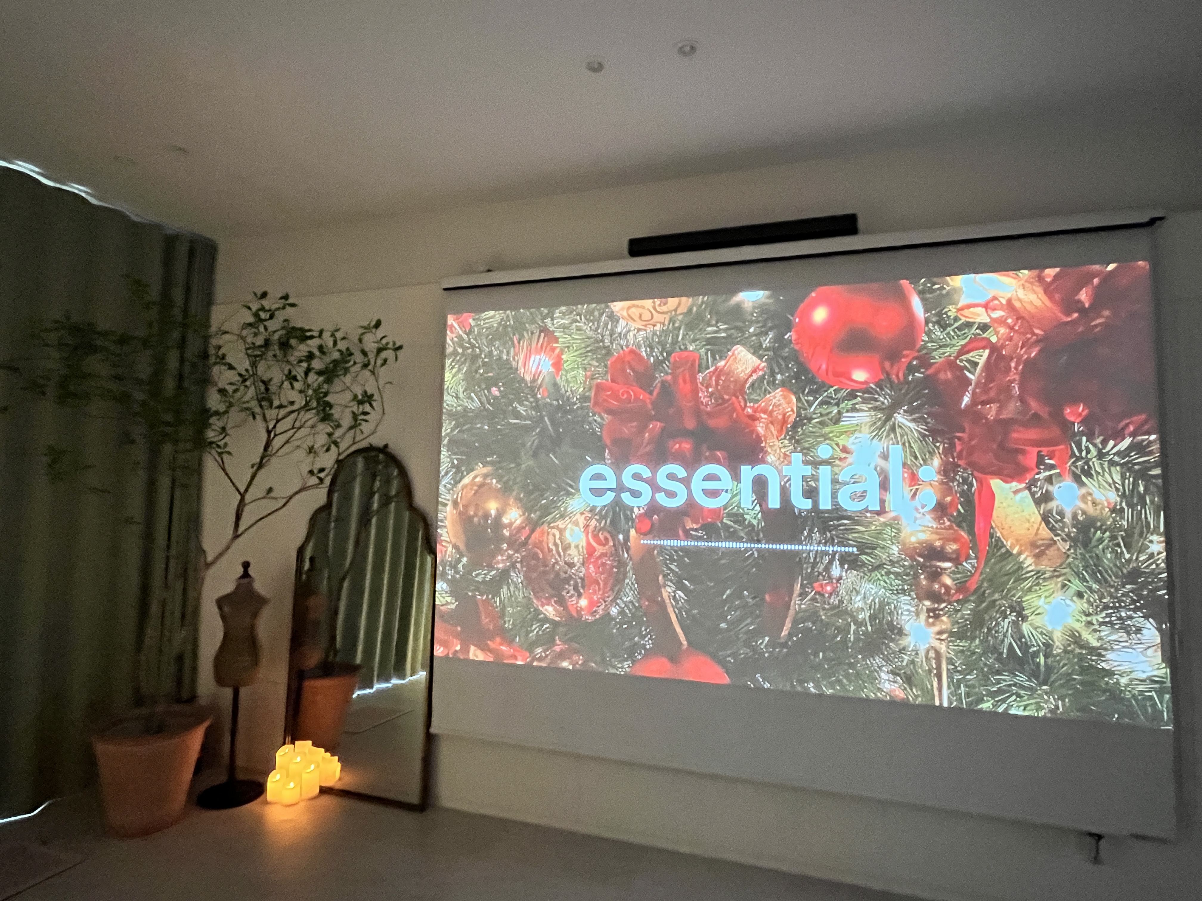 거실에는 스크린이 있었고 빔과 연결해서 사용이 가능했습니다. 숙소에 트리기 있길래 유튜브로 에센셜 크리스마스 음악을 틀어 미리 크리스마스 분위기도 내보았습니다. 사운드바가 있어 음향도 정말 좋았어요.
