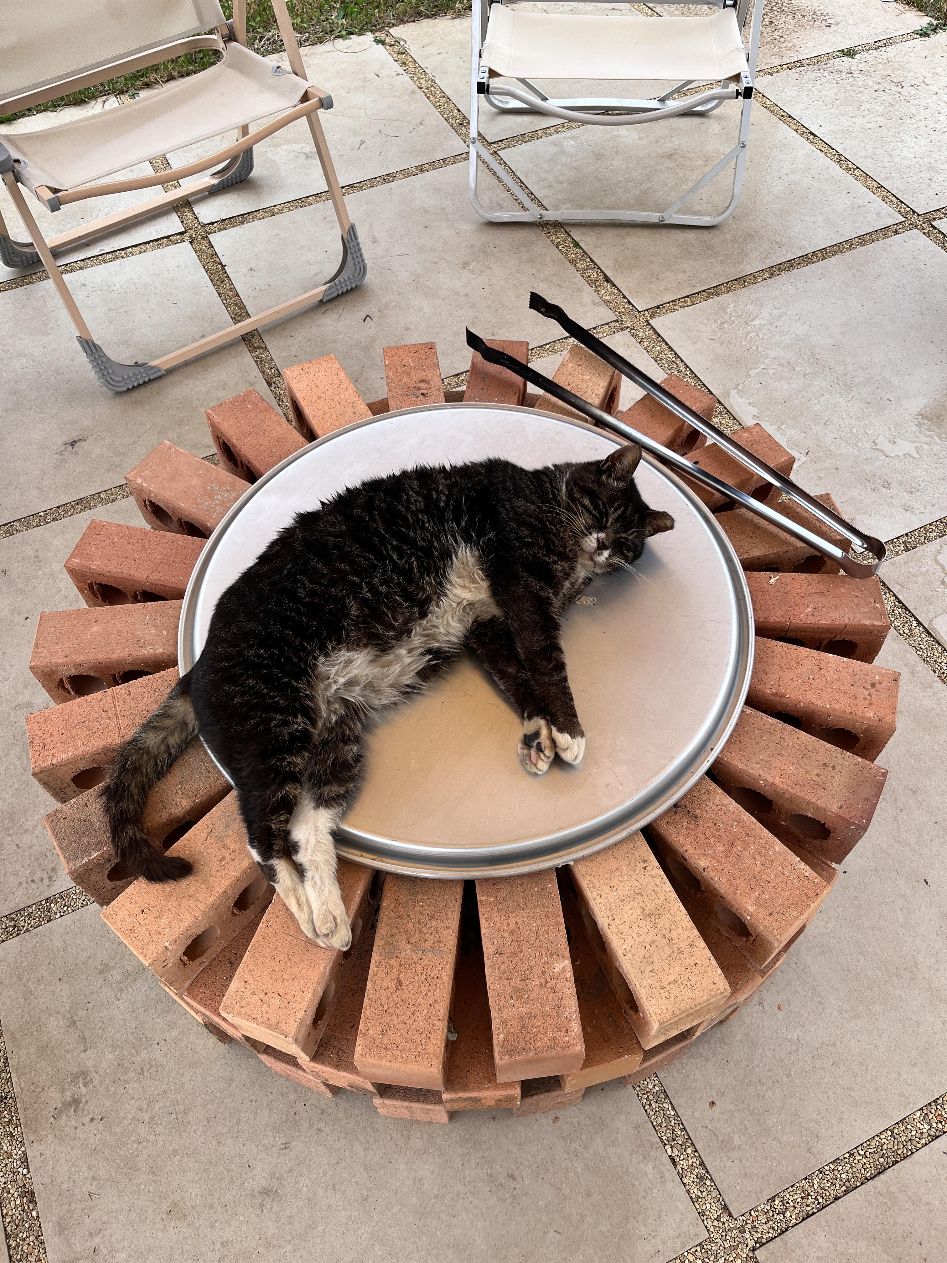 아직도 장작을 태우고 따뜻했는지 고양이가 그 위에서