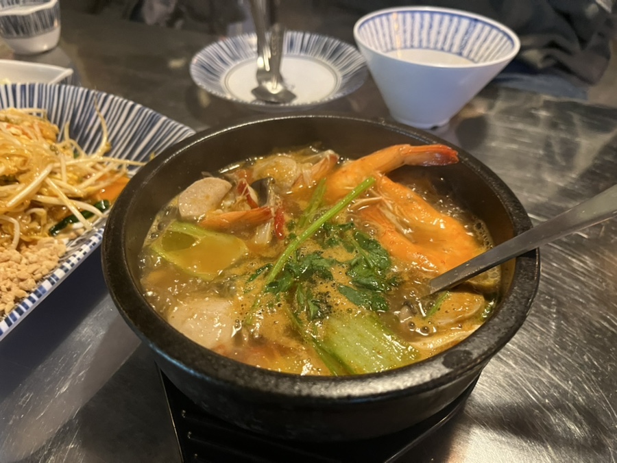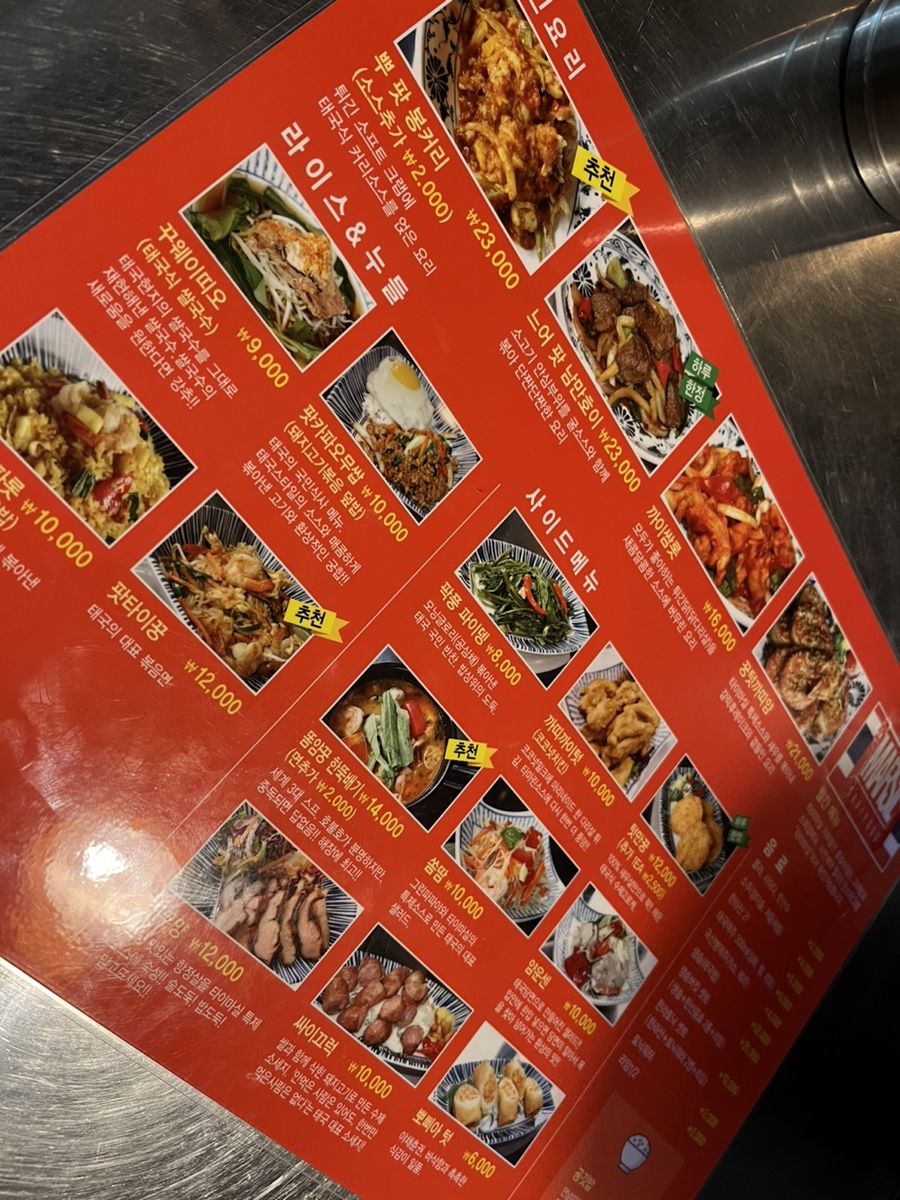 메뉴 : 뿌팟봉커리 23,500원 / 팟타이 12,500원 / 똠양꿍 14,600원 외
