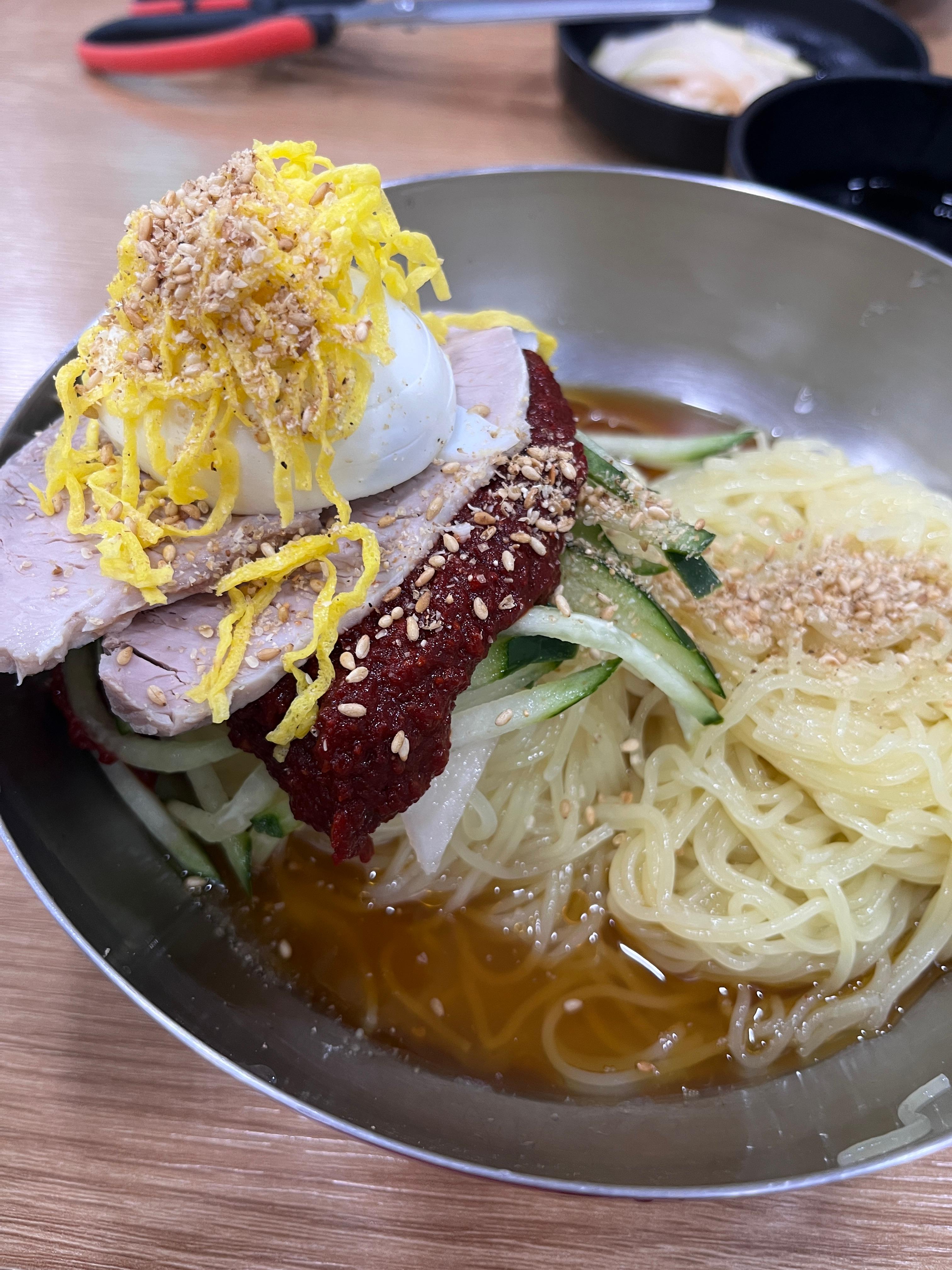 더운 여름이나 매콤한 음식이 당길 때, 안양 부산 가야 밀면의 비빔 밀면은 절대 후회 없는 선택입니다!