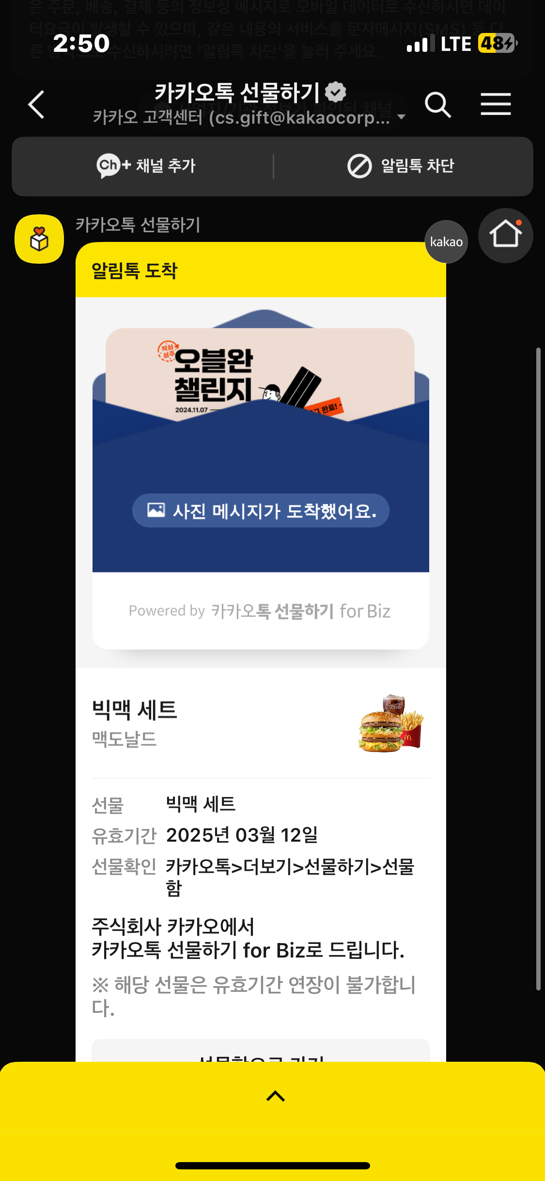 갑자기 카카오톡에서 선물하기가 왔다고 알림이 떠서 보니 누가 나에게 빅맥세트를 선물했더라.