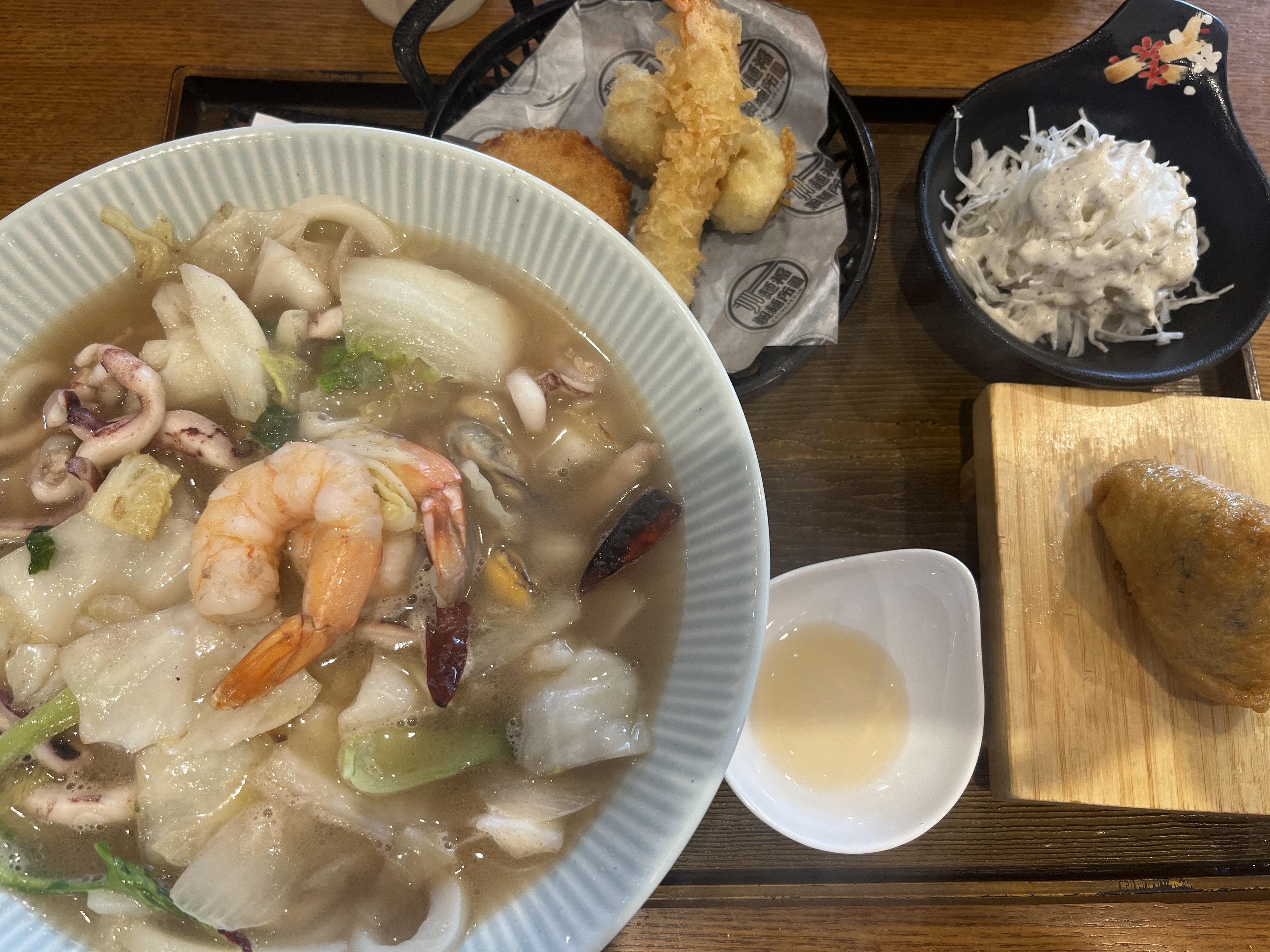 저는 해물우동정식을 주문했고 정식에는 유부초밥 튀김이 포함되어있습니다. 무척 양이 많기때문에 굳이 정식을 먹지않고 단품으로 주문하는것이 좋을 듯 합니다.