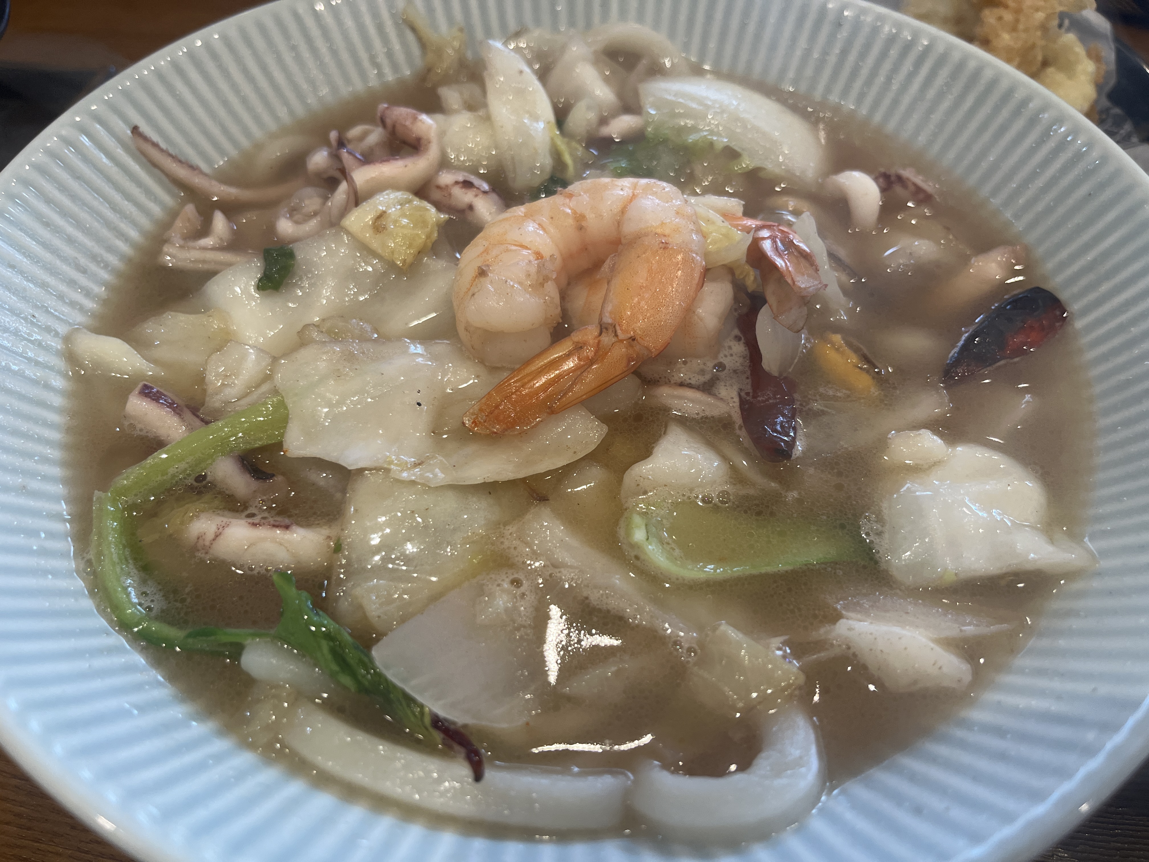 같이 간 사람은 얼큰한 것을 주문했는데 자극적인 맛을 뺀 짬뽕국물우동맛이었습니다.