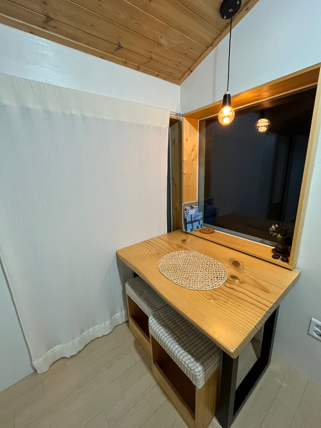 단점은 제 남편 키가 커서 침대에 발이 넘어갔어요. 다른분들 후기봐도 침대가 조금 작다는 평들이 있어요.