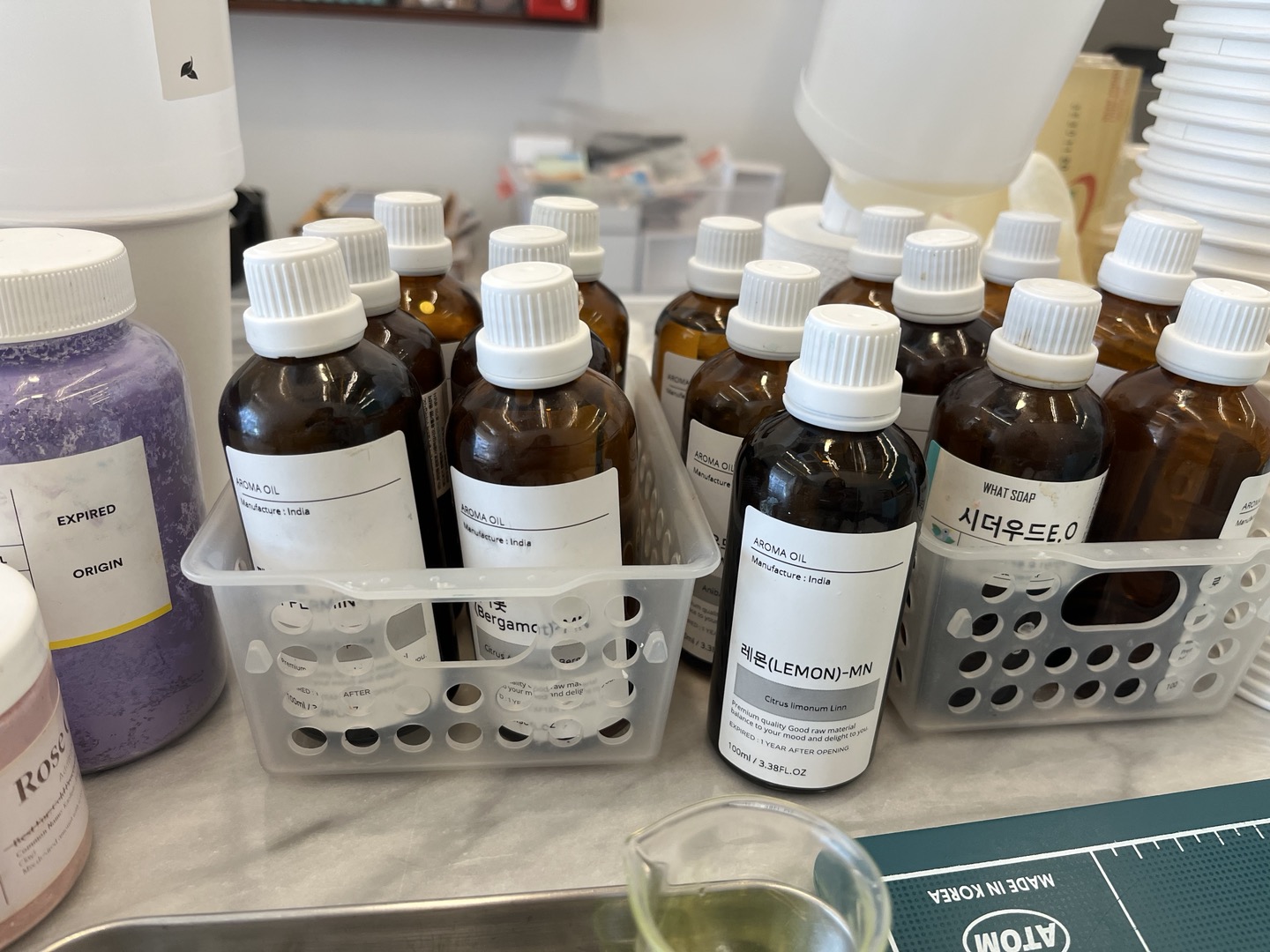 본인이 선택한 아로마오일 향을 첨가합니다. 이 향이 수제비누의 향을 결정합니다.