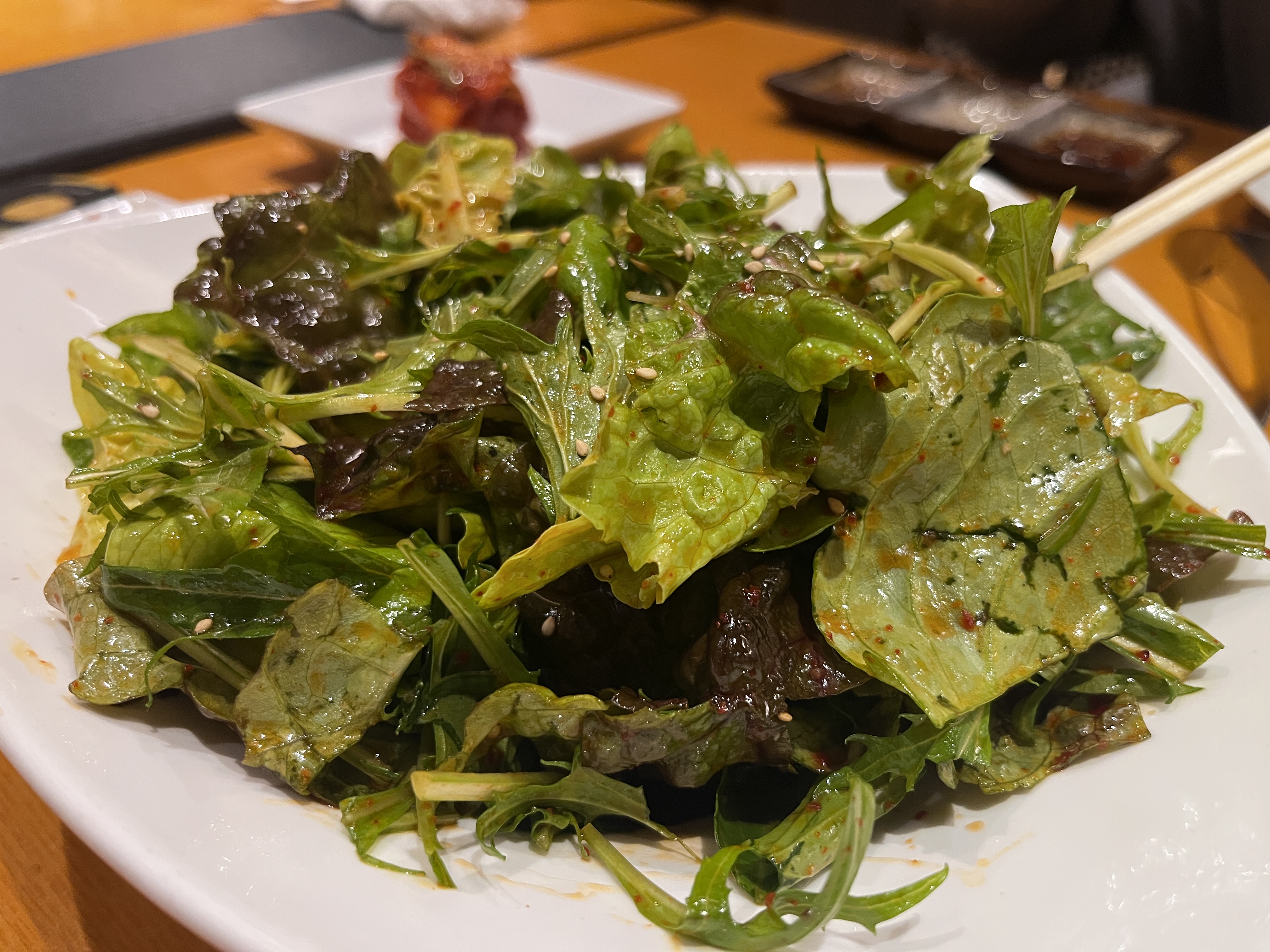 우리나라의 경우 상추가 따로 나오는데 상추가 따로 나오지 않고 파절임과 함께 고기와 먹을 수 있도록 나옵니다.